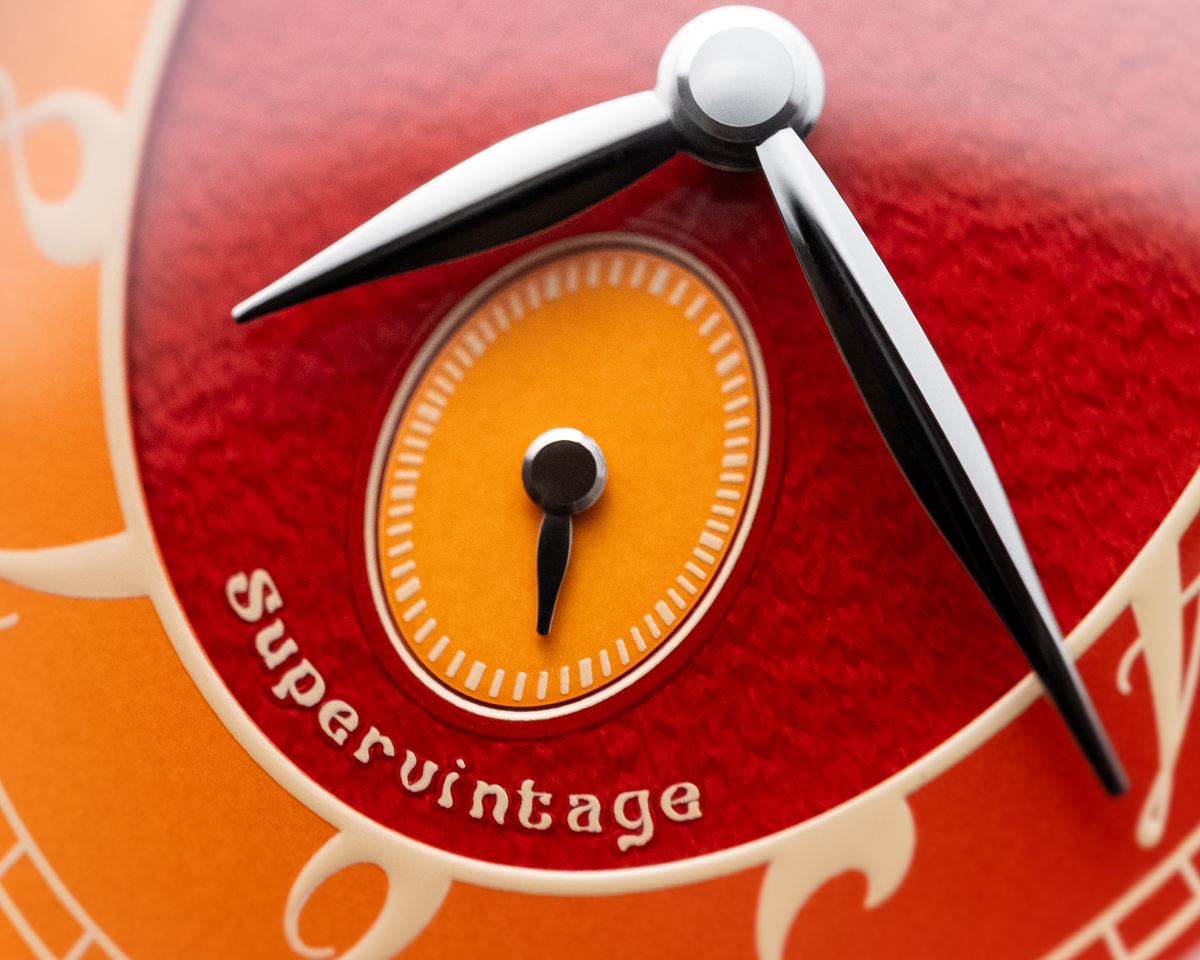 At the heart of the Supervintage beats a Top Grade ETA 7001, decorated with blued screws and elegant Côtes de Genève finishing.