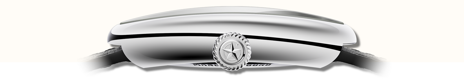 The crown is equally refined, featuring our moulded Guiding Light logo. The angled grip etching was made to be wound... hand wound.