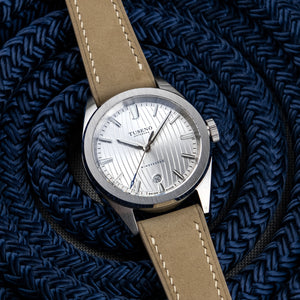This nubuck strap adds a refined, casual edge to your look. Made from the tough outer layer of cowhide, it’s softer than you expect, with a velvety texture that’s more durable than suede. Over time, it develops a graceful patina, making your strap uniquely yours. Finished with off-white hand stitching for timeless style.