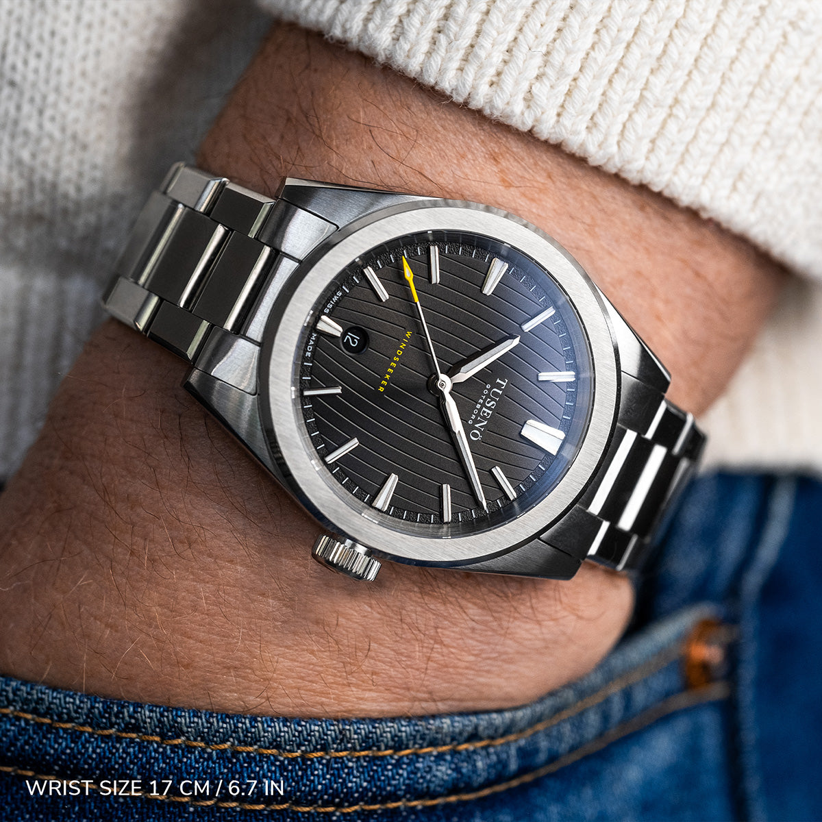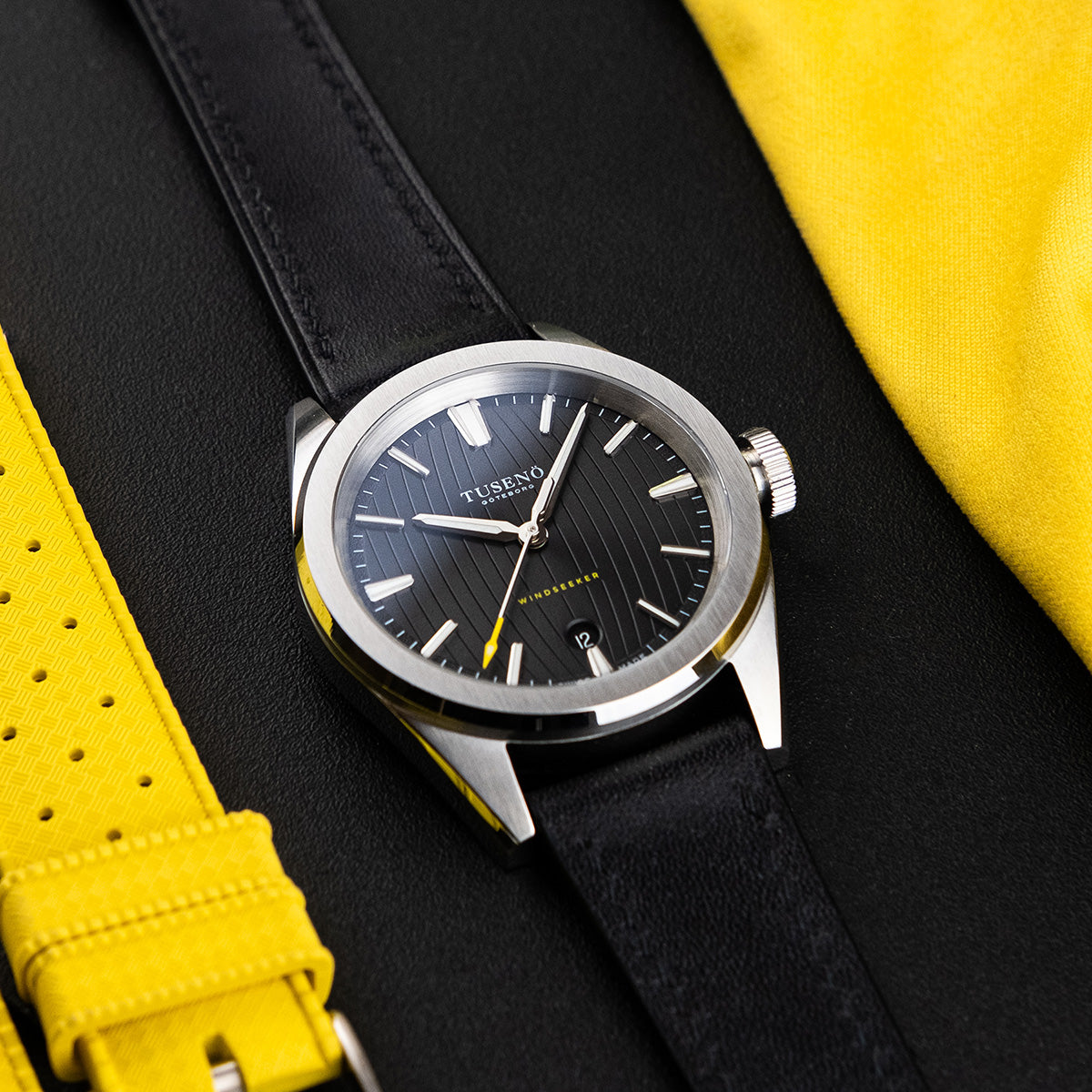 Hands: Luminova filled, contrasted yellow tip on seconds hand
